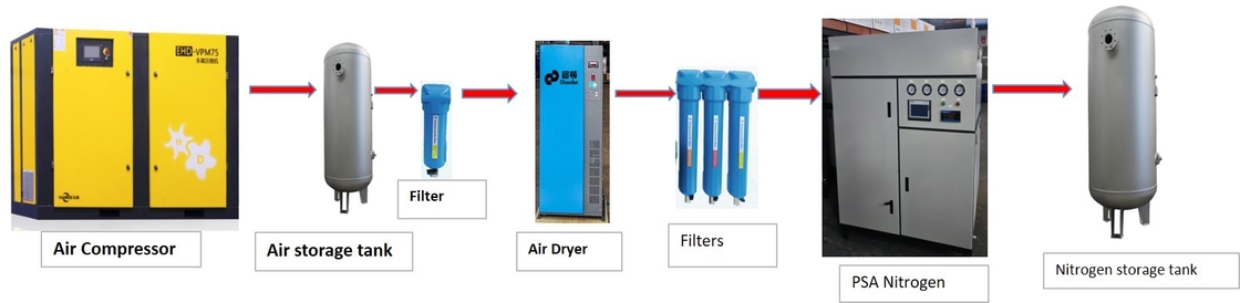 A matéria-prima para o gerador de nitrogênio PSA é o ar, que é abundante e prontamente disponível.O sistema foi concebido para produzir nitrogénio de alta pureza com um nível de pureza de até 99.99%.